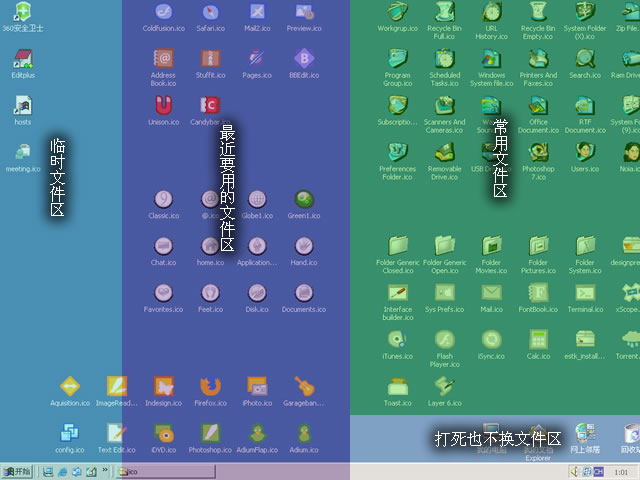 每一个图标都代表了一种应用,有人喜欢把当前所有可能用到的图标全放在桌面上~~~~